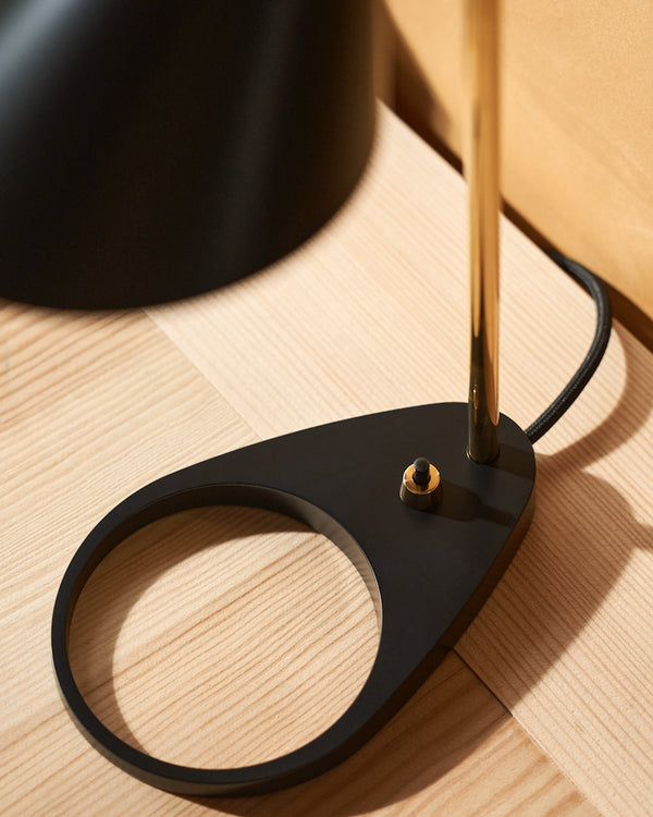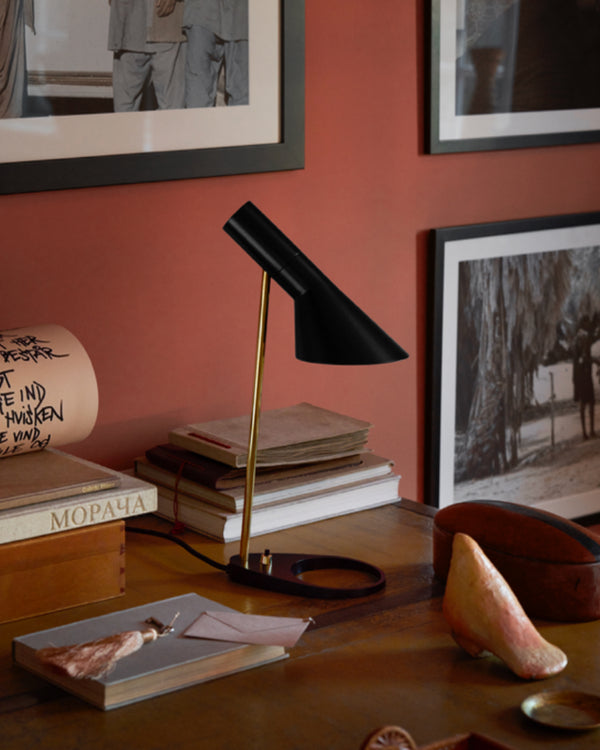 The AJ Table Lamp Mini, re-released in 2020 to celebrate the hotel's 60th anniversary, features a pivoting shade with a white-painted interior. It offers soft, focused light, perfect for both ambient and task lighting, seamlessly pairing functionality with aesthetic appeal.