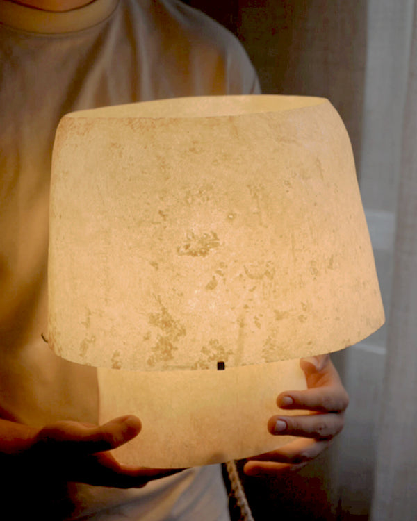 Architect and Designer Jorge Suárez-Kilzi carefully assembles each lamp at his studio in Spain, resulting in unique variations highlighted by the lamp's warm, natural glow.
